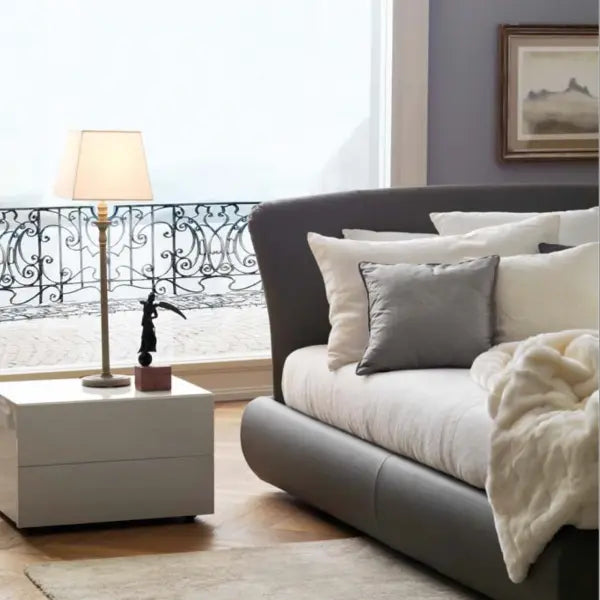 Bambò Classic ist ein Synonym für Gastfreundschaft, seine umhüllenden Formen suggerieren einen beruhigenden Komfort. Der Bettrahmen, der sich durch die abgerundete, mit Leder Grigio gepolsterte Linie auszeichnet, folgt dem gesamten Umfang mit der Handwerkskunst eines Produkts von extremer Qualität und Langlebigkeit.