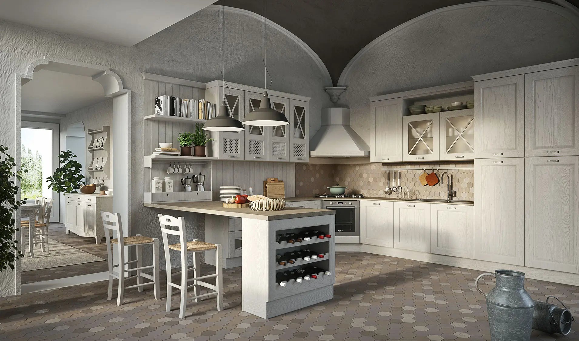 Die Bellagio-Küche lässt den Charme eines einfachen Lebens und der Wiederherstellung von Familientraditionen wieder aufleben und spielt mit der Kraft der materiellen Energien, die den Zeitzeichen und Marken trotzen.