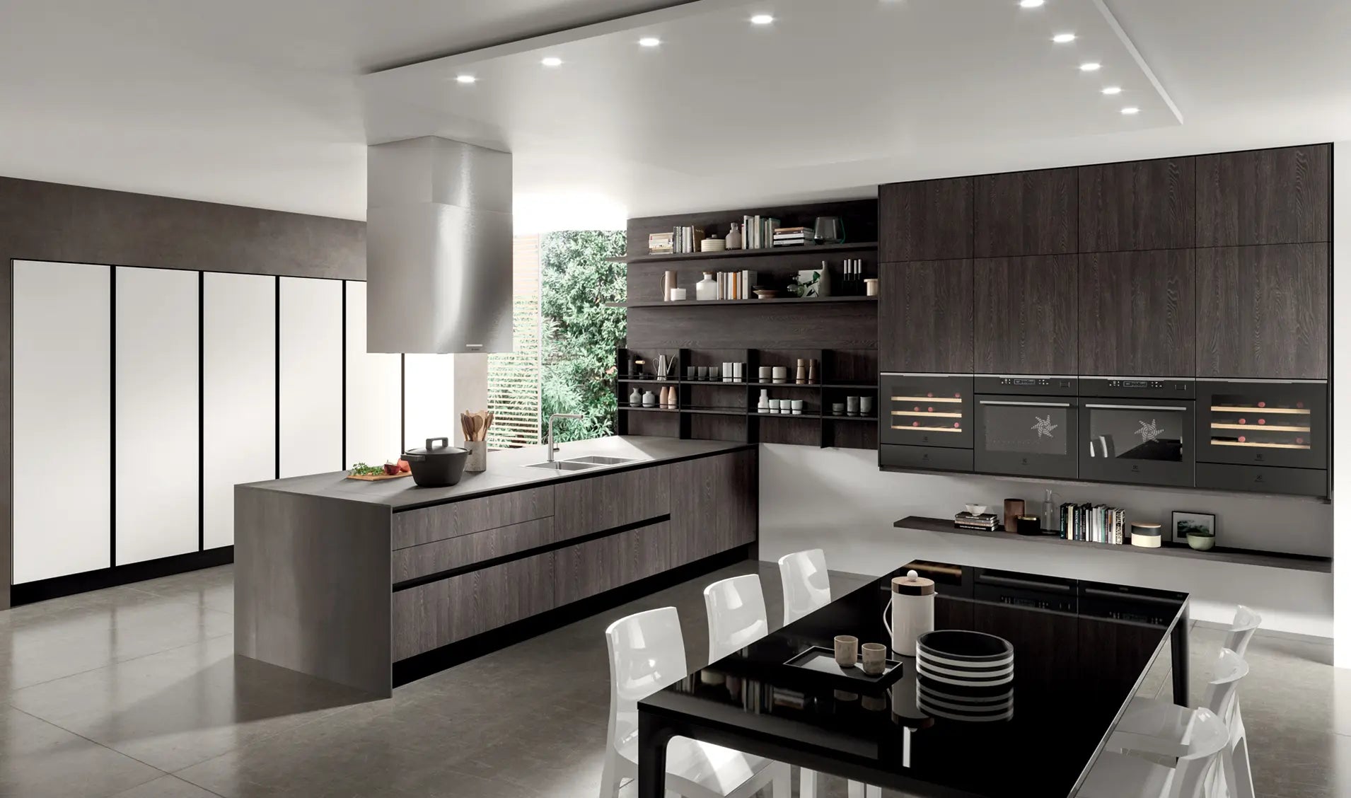Die primären Schlüsseleigenschaften, die das Bijou-Projekt qualifizieren, sind das Glas und ein High-Tech-Material wie die Beständigkeit gegen Hitze, Kratzer, Stöße dünne Porzellanplatte; diese Art von Platte lässt ihre Eigenschaften und ihre Schönheit im Laufe der Zeit intakt.