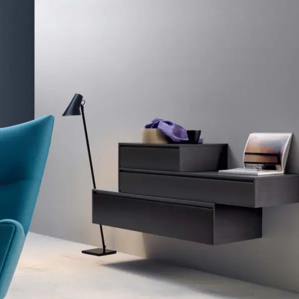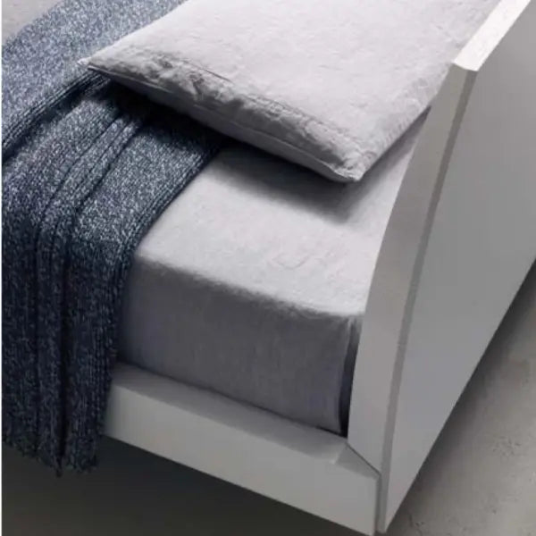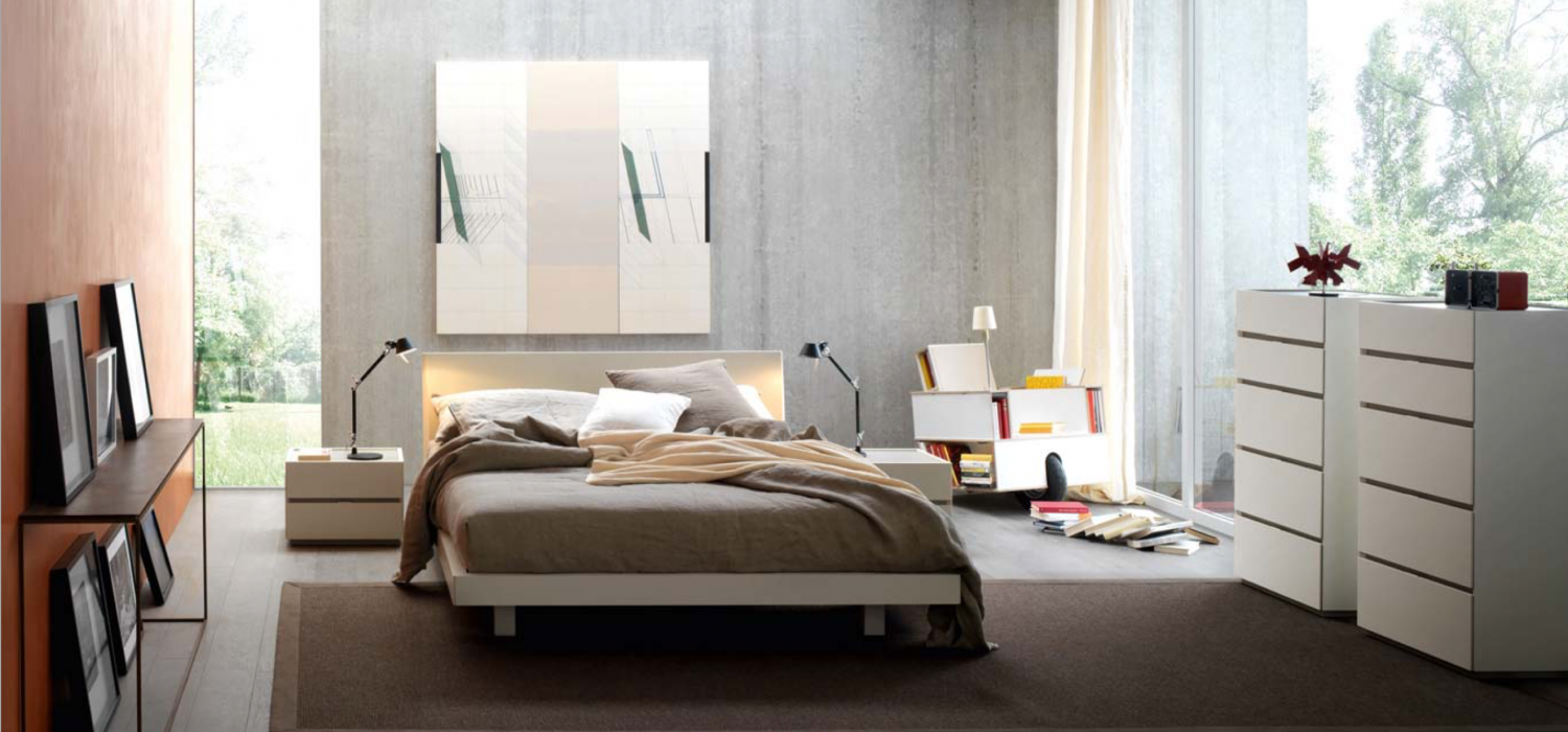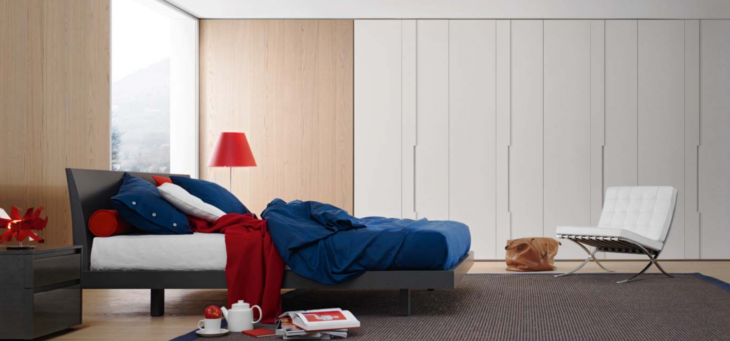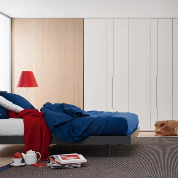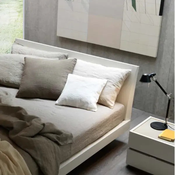 Optisch wirkt Brio wie eine leichte und luftige Ebene, die jedes Gewicht mit Sicherheit und Kraft trägt. Das Kopfteil wirkt skulptural, wodurch seine Dicke dank der besonderen Neigung auch frontal sichtbar wird. Seine Zweckmäßigkeit wird durch die Beschichtung in synthetischem Escheffekt unterstrichen, die eine gute Beständigkeit gegen Stöße und Zeit garantiert.