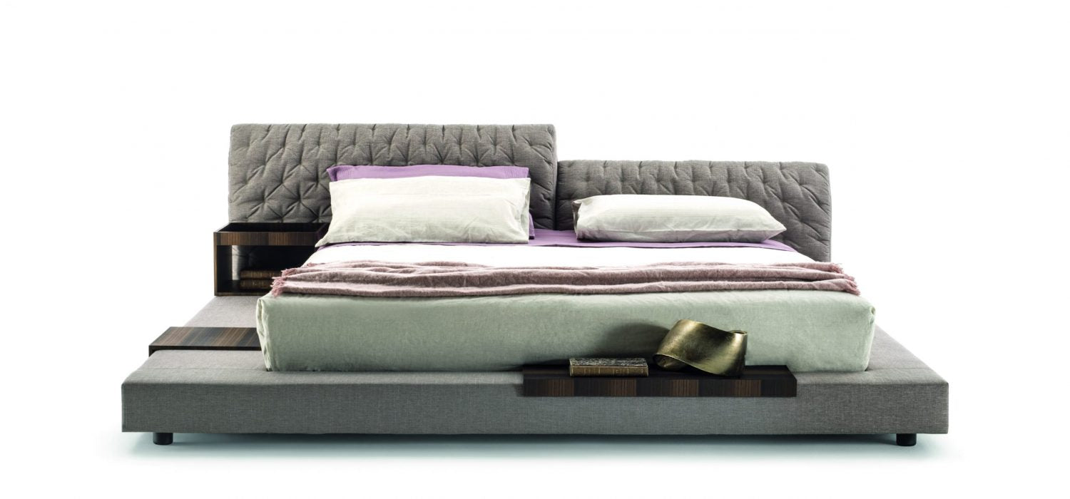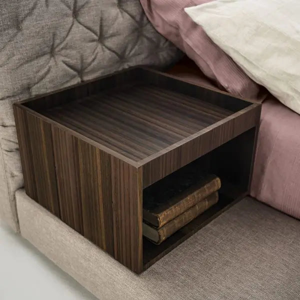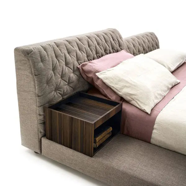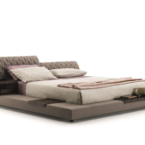 Zeitgemäß in Form und Funktion, beherrscht das Bett Miller den Raum mit einer starken architektonischen Matrix. Eine ideale Lösung zur Einrichtung eines Schlafzimmers, das seine Identität als privater Raum verstärken will, ein kleiner Mikrokosmos zum Entspannen, Isolieren und Regenerieren. Die erkennbaren Zeichen von Miller bleiben in der Asymmetrie der Formen von Kopfteil und Bettrahmen. Das Kopfteil ist mit einer zarten Steppung versehen und besteht aus zwei unterschiedlich hohen Volumen, die als weiche Kissen nebeneinander liegen. Auch der Bettrahmen ist unregelmäßig: eine Seite schmal und die gegenüberliegende groß, wo auf frei entlang des Umfangs Holzablage als Nachttische und Tabletts immer in Holz zu legen. Erhältlich auch in der Version mit Kopfteilen in gleicher Höhe und schmalem Bettrahmen. Miller hat eine Holzstruktur, die mit nicht verformbarem Polyurethan gepolstert und mit abnehmbarem Stoff oder Leder bezogen ist.