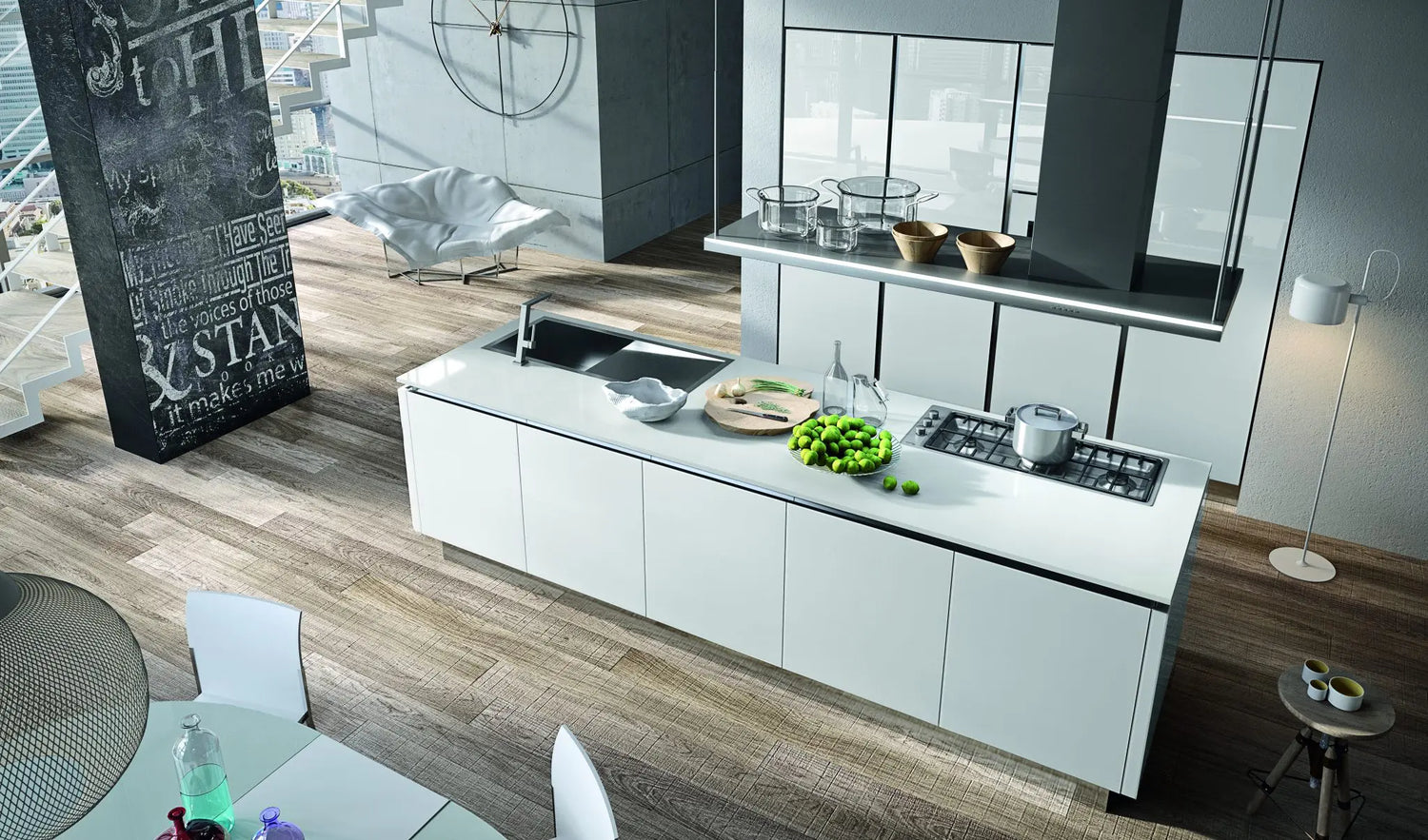 Im Bijou Programm spielen zwei Materialen eine zentrale Rolle: Glas und das innovative Feinsteinzeug in dünnen Platten verarbeitet. Diese Platten sind hitzebeständig, kratzfest, stoßfest und gegen jegliche Art der Abnutzung resistent. Eigenschaften und Schönheit bleiben auch nach langer Zeit unverändert.