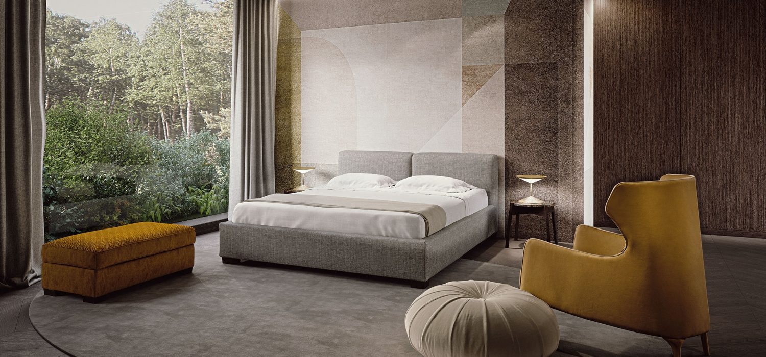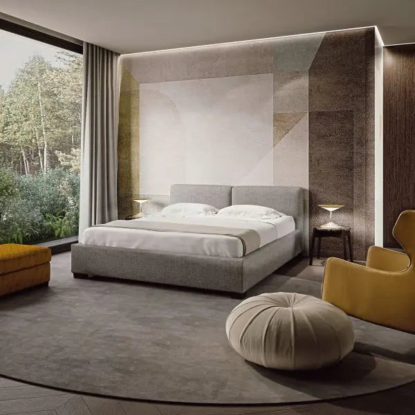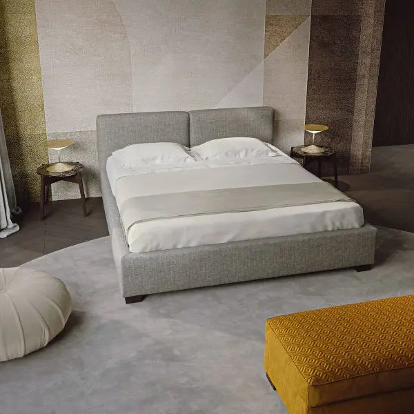 Als Erweiterung der gleichnamigen Kollektion von Sofas und Sesseln, mit denen es die diskrete zeitlose Ästhetik teilt, verfügt das gepolsterte Bett Tiberio über einen rationellen gepolsterten Bettrahmen, der der Fluidität der weichen Doppelvolumina des Kopfteils entgegengesetzt ist, eine äußerst bequeme Unterstützung zum Entspannen und Bequemlichkeit. Das Untergestell steht auf quadratischen Füßen in Massivholz wengefarben oder auf Wunsch nussbaumfarben, während der Lattenrost aus Holz ist. Vorgeschlagen mit Bezug abnehmbar in Stoff oder in Leder.
