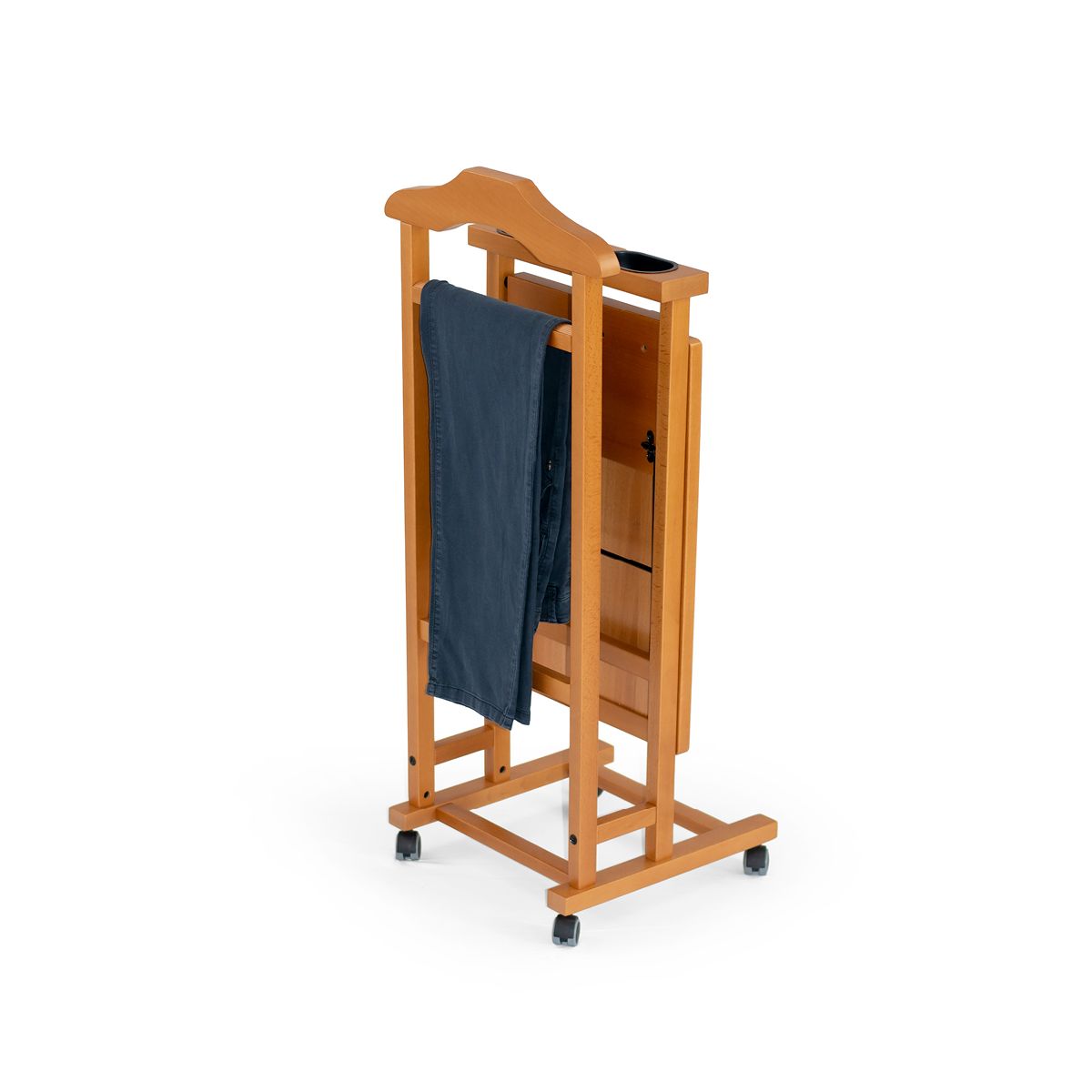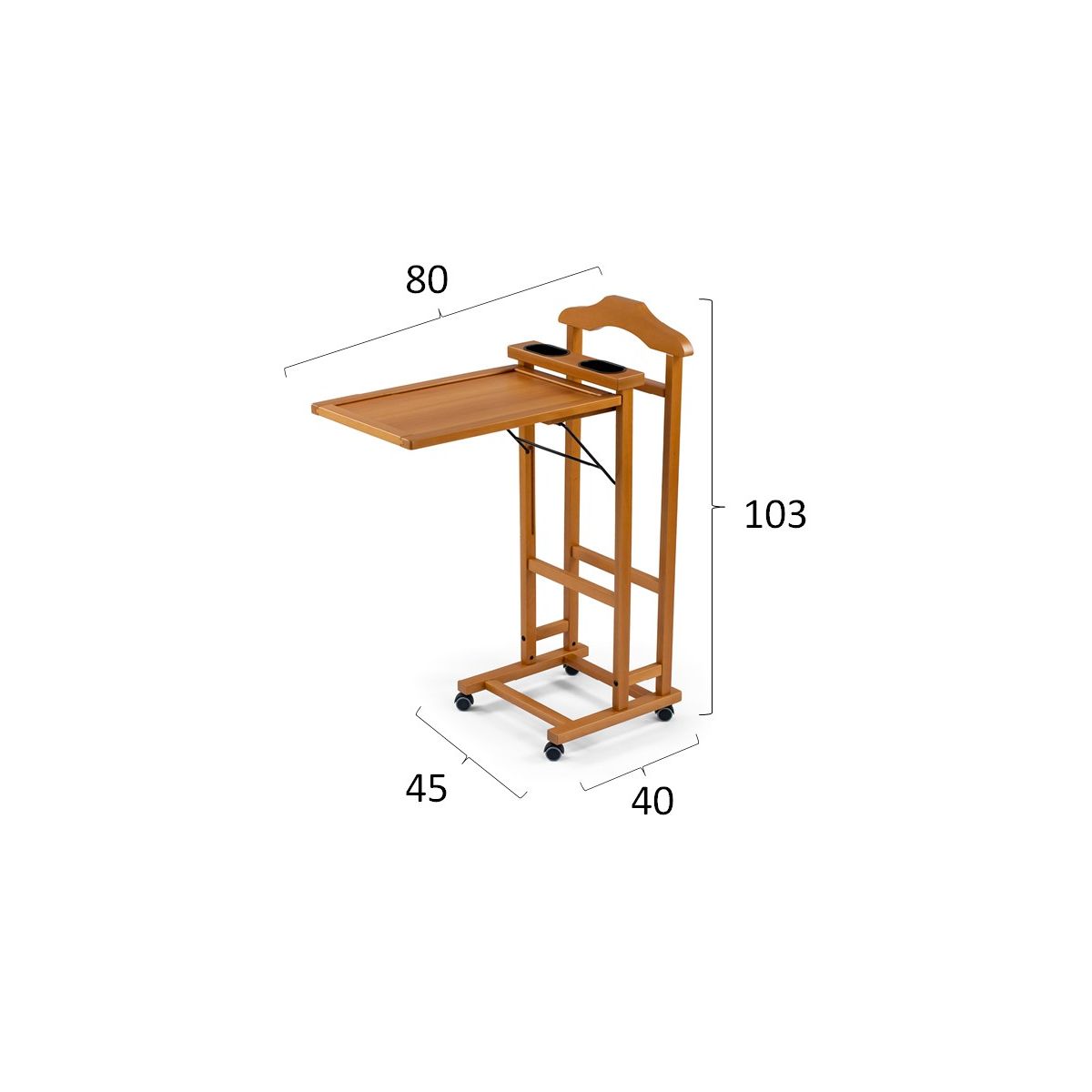 Funktionaler Schlafzimmer-Kleiderbügel mit Struktur aus massiver Buche Bestehend aus einem Kleiderbügel und einem großen oberen Ablagefach mit zwei praktischen Behältern Großes aufklappbares Tablett, ideal für Frühstück im Bett oder als Servierwagen Die Morgen werden angenehmer sein dank unserer Kleiderbügel, Sie werden Ihre Kleidung immer bereit zum Anziehen finden LEICHT ZU MONTIEREN MIT ANLEITUNGEN - ABMESSUNGEN: GEÖFFNET: L 80 x H103 x T45 cm. GESCHLOSSEN: H103 X 40 x T45 cm ORIGINAL MADE IN ITALY, exklusiv hergestellt von ARREDAMENTI ITALIA GROUP S.R.L."