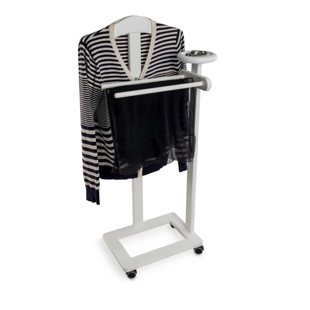 "Kleiderbügel für Schlafzimmer ANTIMO, Holz - Weiß-Finish • Vollständig aus massiver Buche gefertigt • Schwenkbare gummibeschichtete Räder zum einfachen Bewegen und Verschieben. • Bestehend aus einem Kleiderbügel, drei Hosenstangen und einer praktischen Schale für Gegenstände • Solide Basis aus massiver Buche • Die Morgen werden angenehmer sein dank unserer Kleiderbügel, Sie werden Ihre Kleidung immer bereit zum Anziehen finden • Produkt leicht zu montieren • ORIGINAL MADE IN ITALY, exklusiv hergestellt von ARREDAMENTI ITALIA GROUP S.R.L."