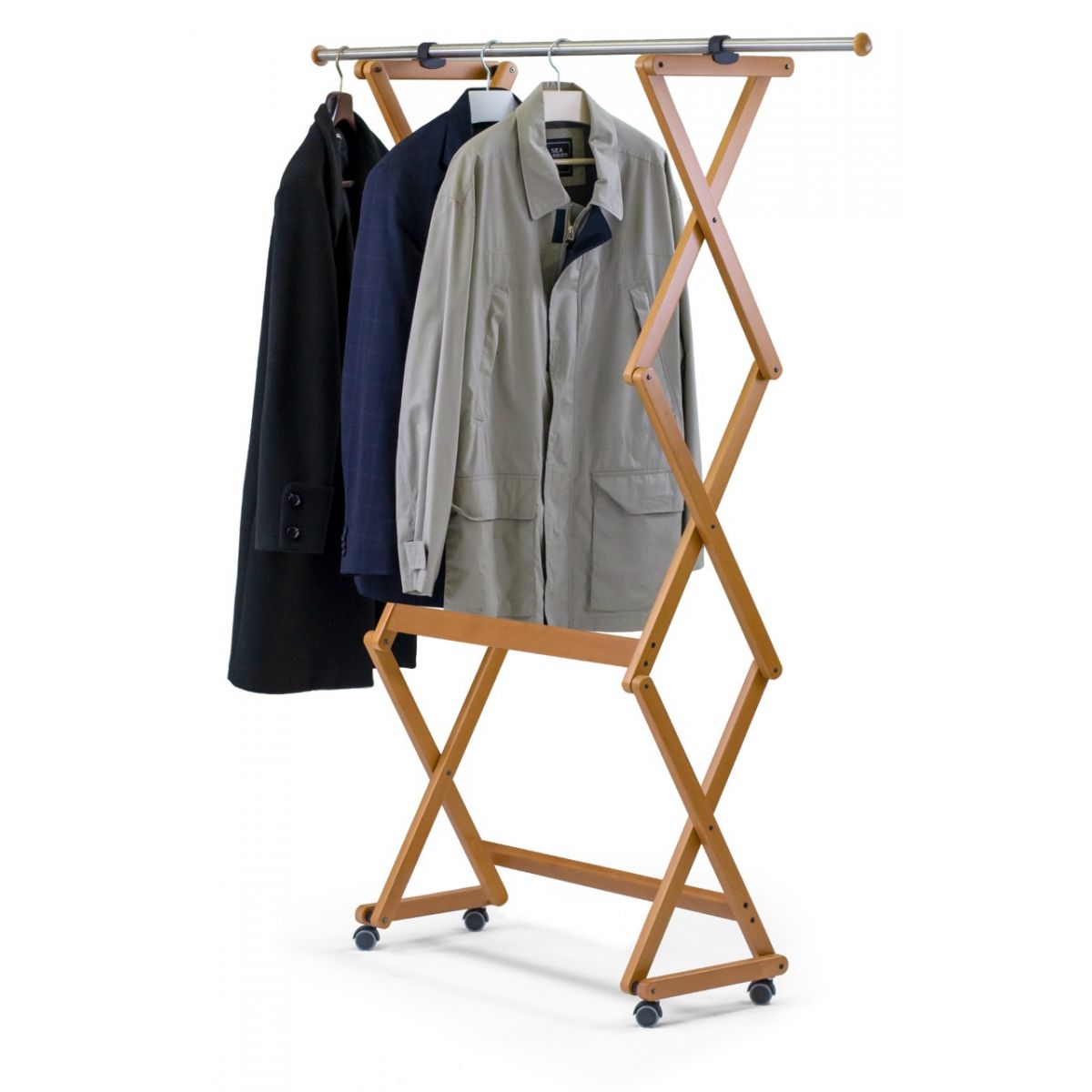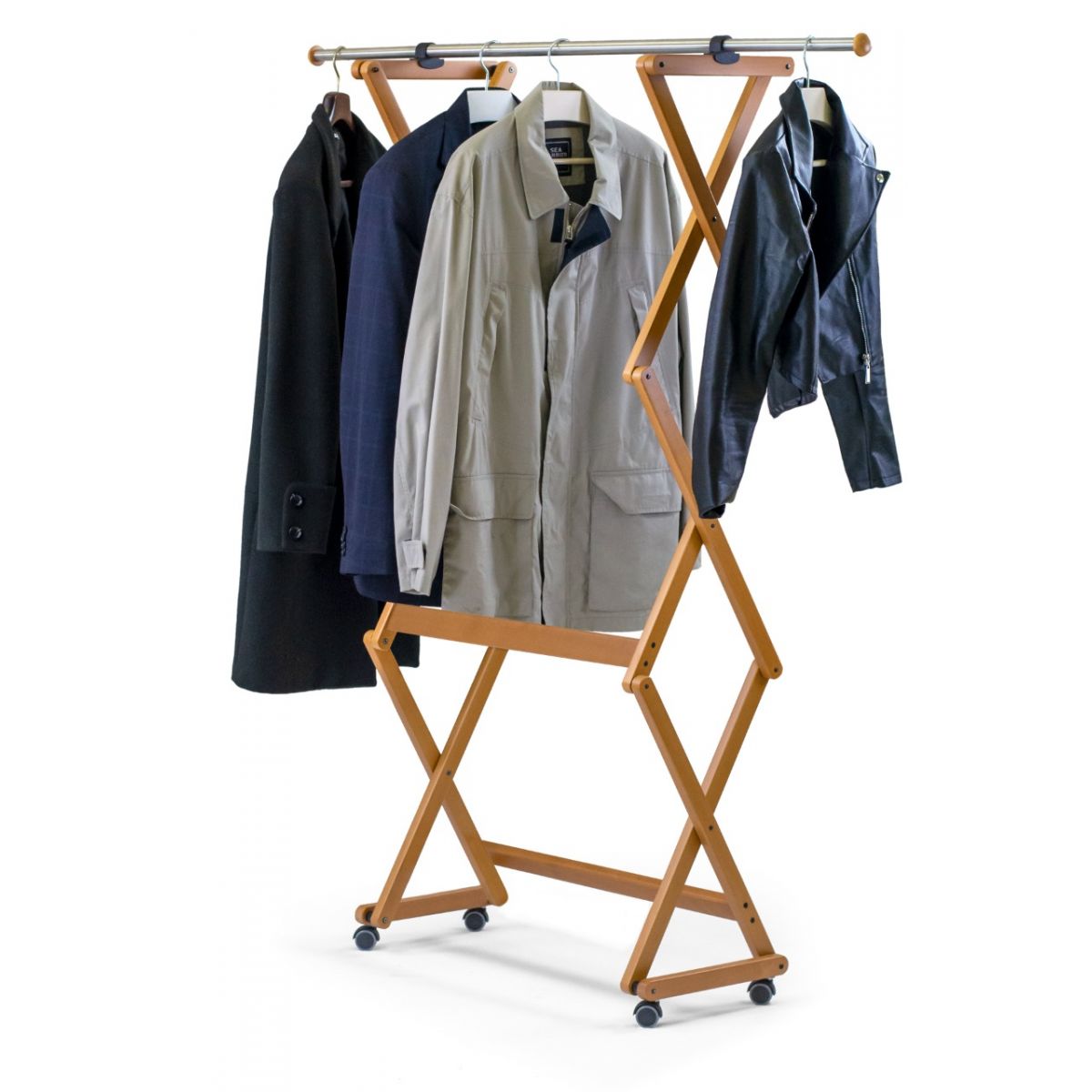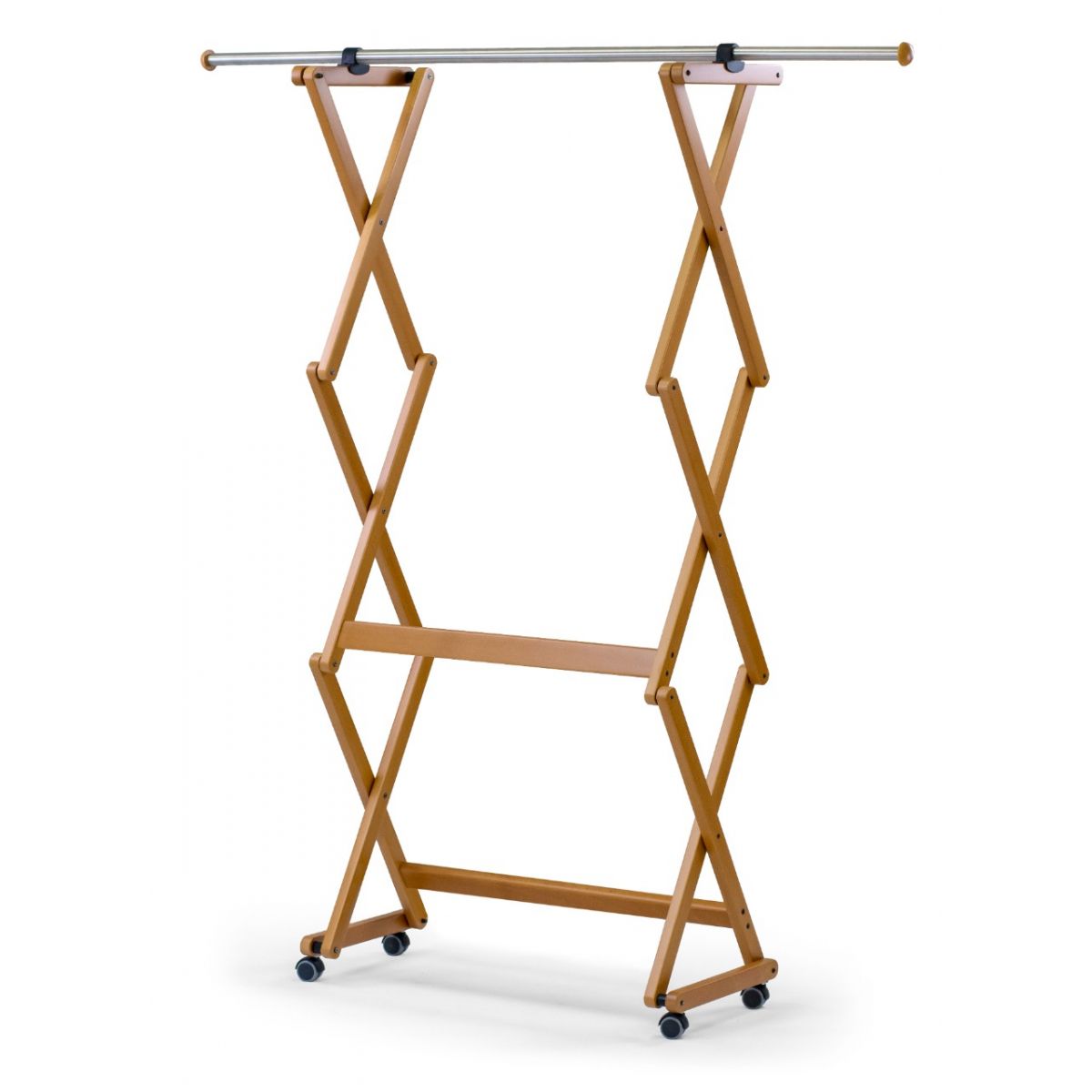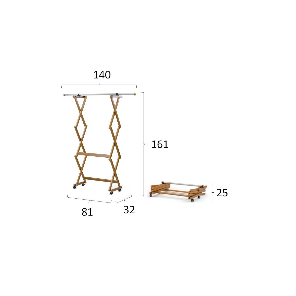 Struktur komplett aus massiver Buche, mit ausziehbaren Edelstahlstangen an beiden Seiten, für eine Verlängerung der Stange von 78 cm bis zu 140 cm.