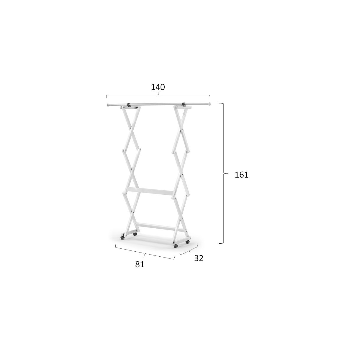 Robust und sehr sicher, kann bis zu 30 kg Kleidung gleichmäßig auf der gesamten Stange aufgehängt werden.