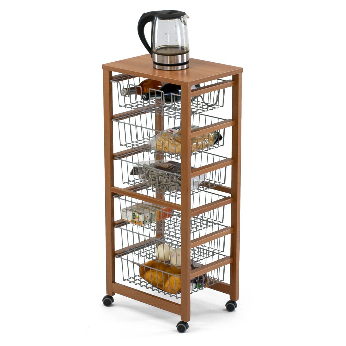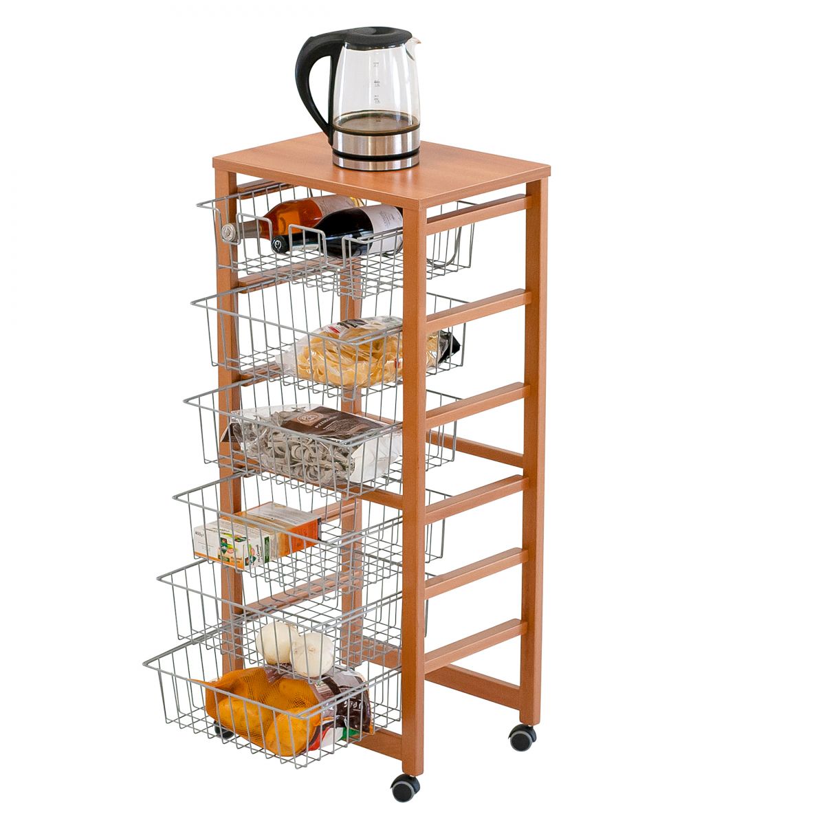 "Einkaufswagen Küche GUSTAVO, Holz - 6 Körbe - Kirschholz-Finish