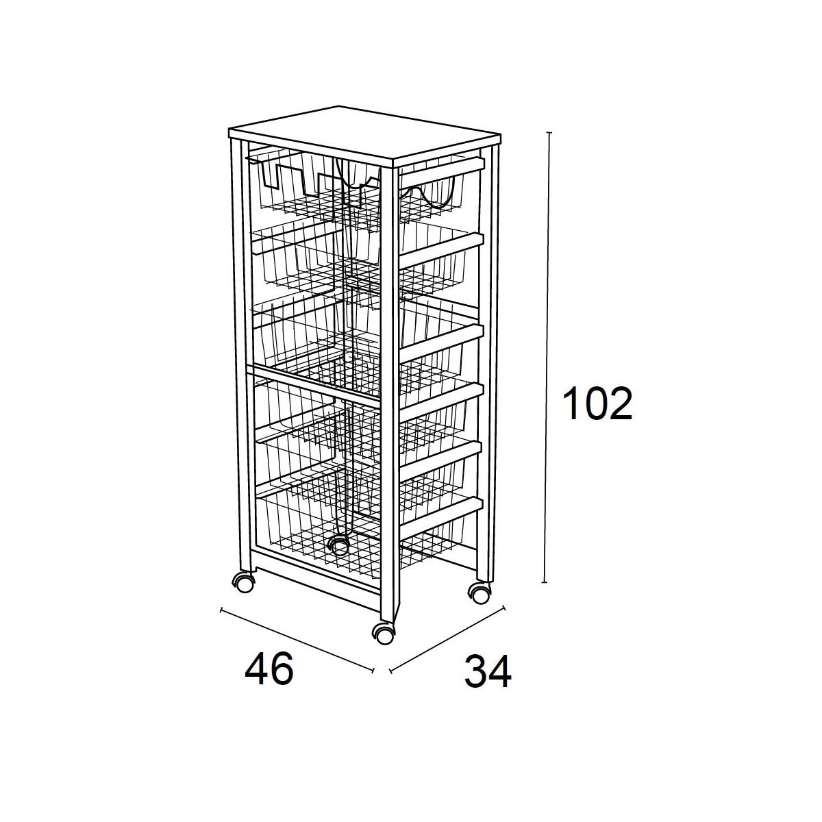 - Struktur aus massiver Buche, 6 herausziehbare Körbe aus pulverbeschichtetem Metall