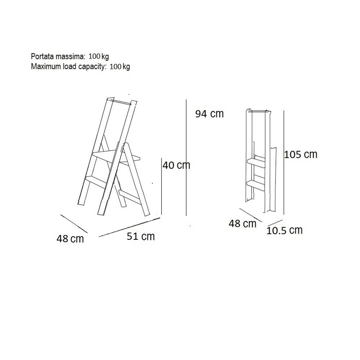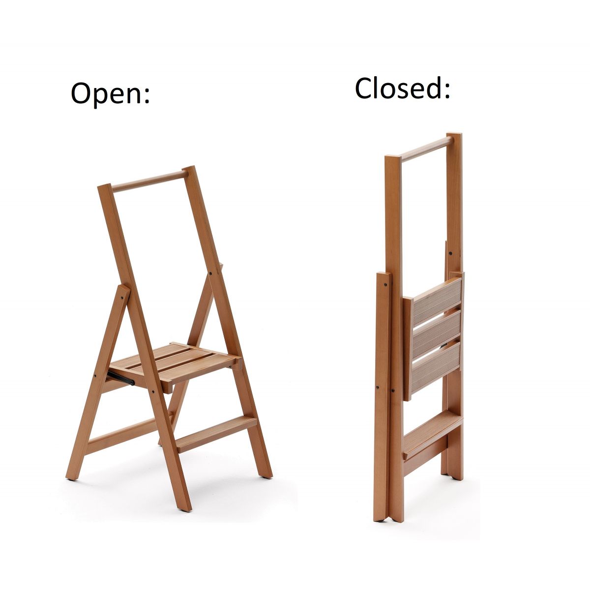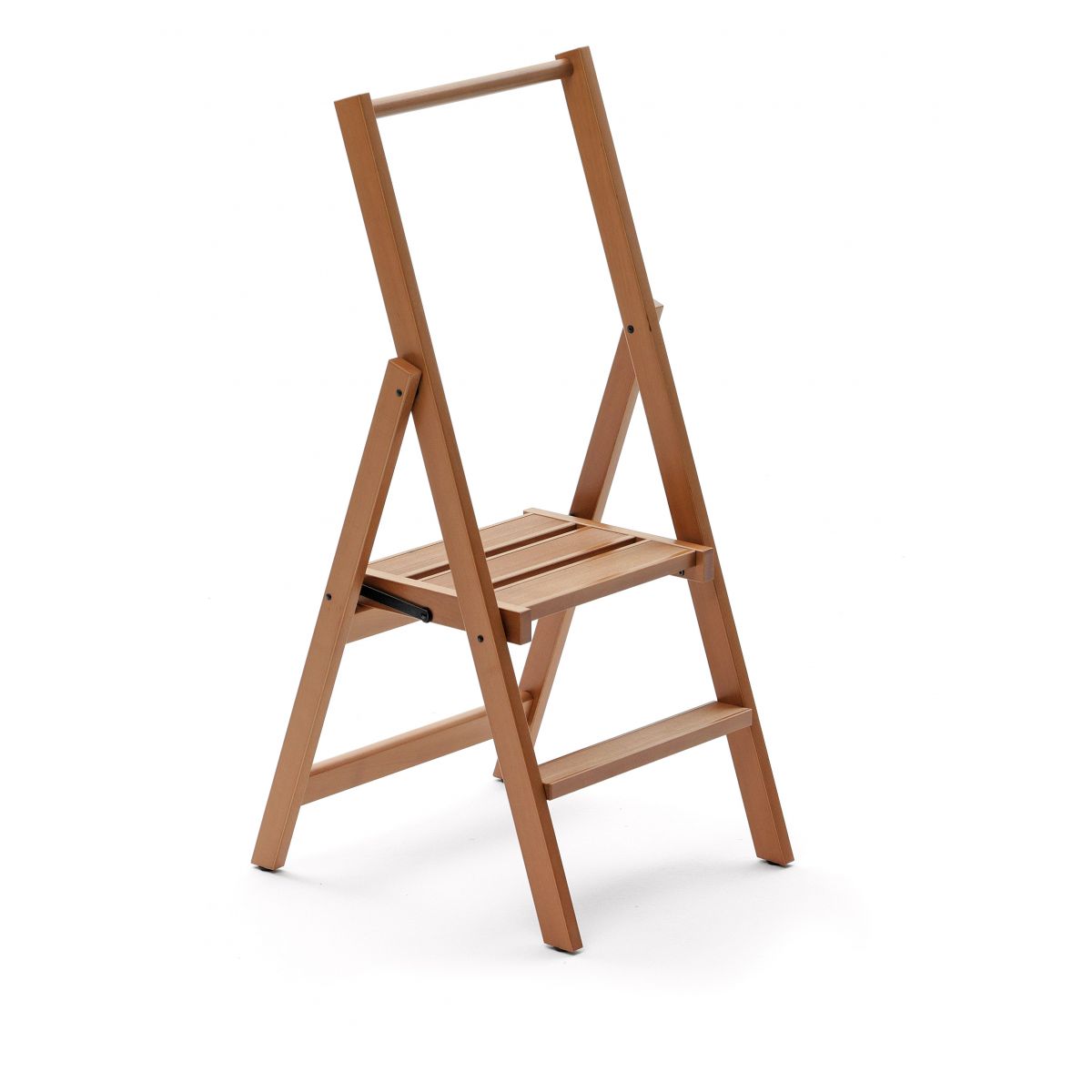 • Klappbare Leiter mit 2 rutschfesten Stufen, komplett aus massiver Buche, Gummifüße an der Basis