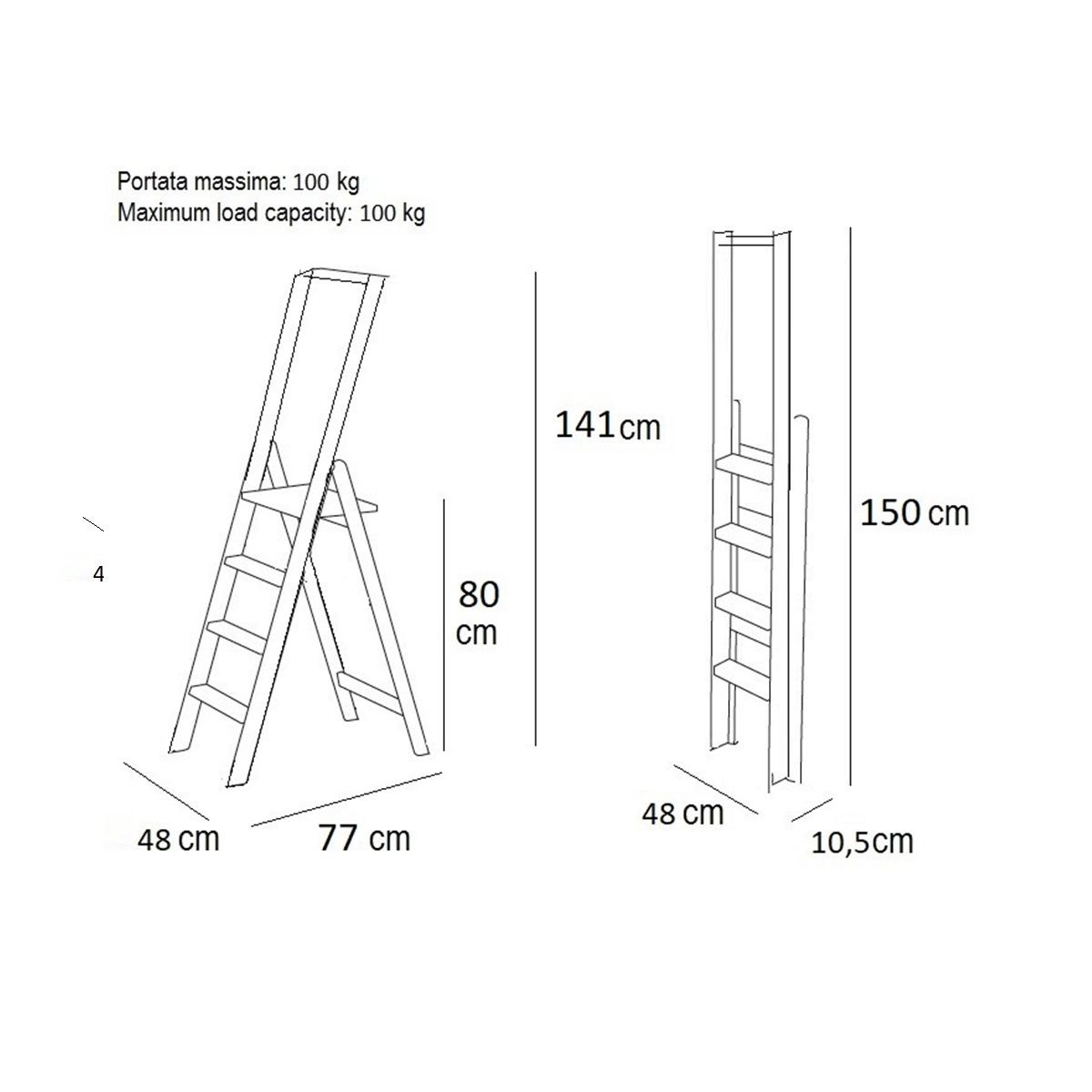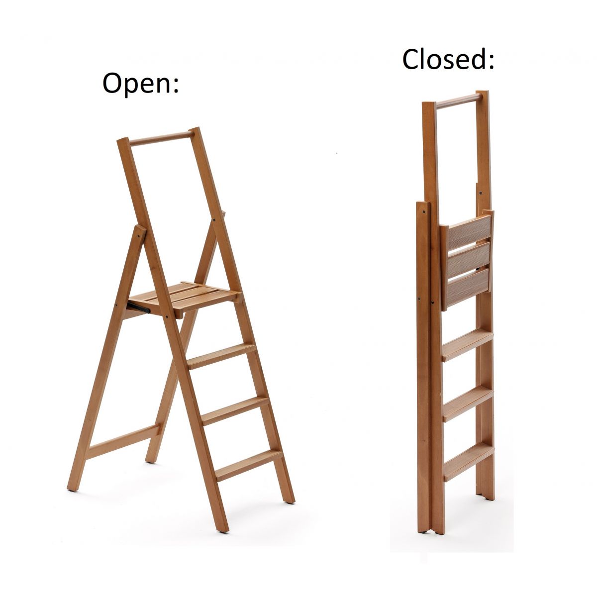 • Klappbare Leiter mit 4 rutschfesten Stufen, komplett aus massiver Buche, Gummifüße an der Basis