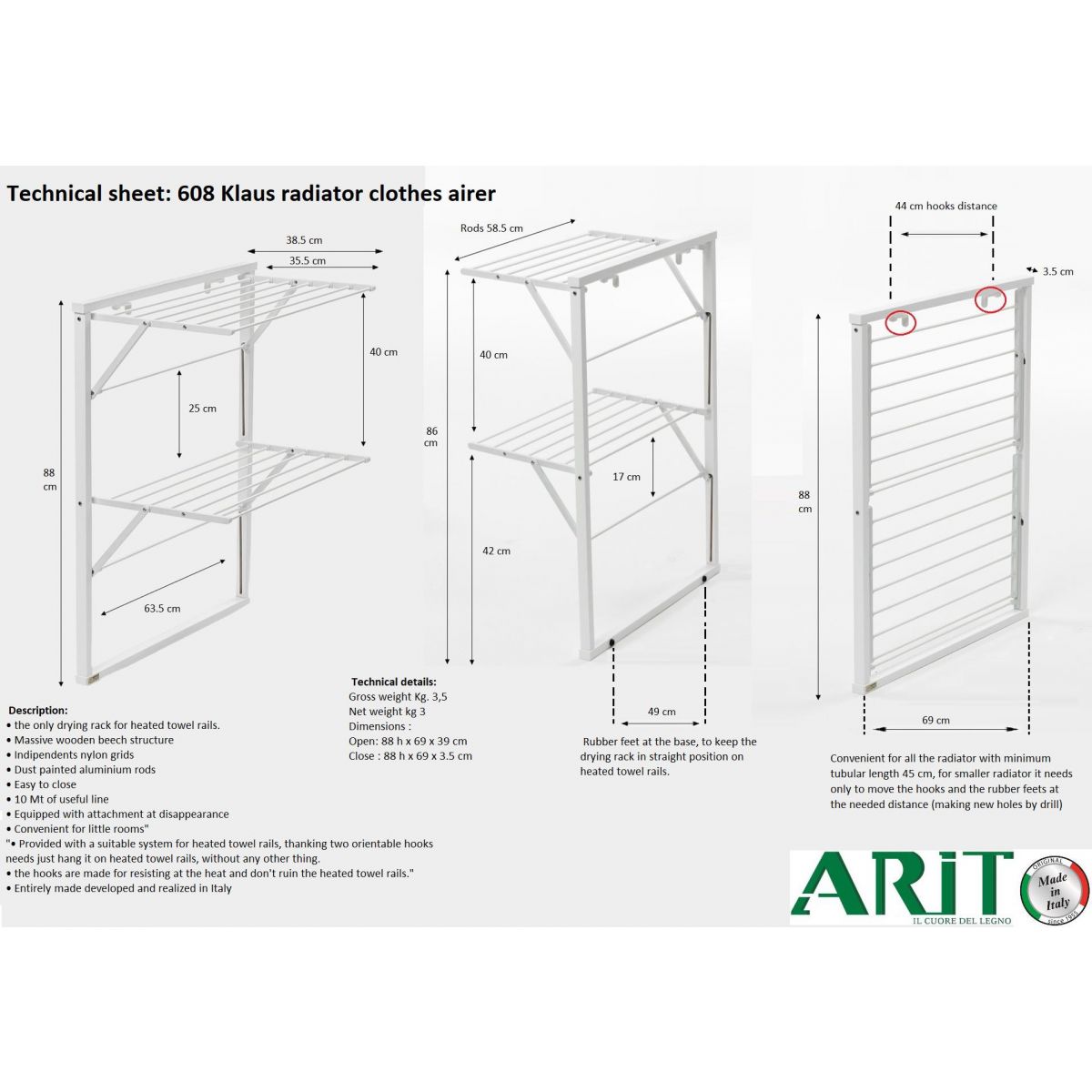 • Der einzige Wäscheständer für Heizkörper, Massivholzstruktur, unabhängige Nylon-Gitter, die sich dank des "Easy-Open" Systems öffnen lassen