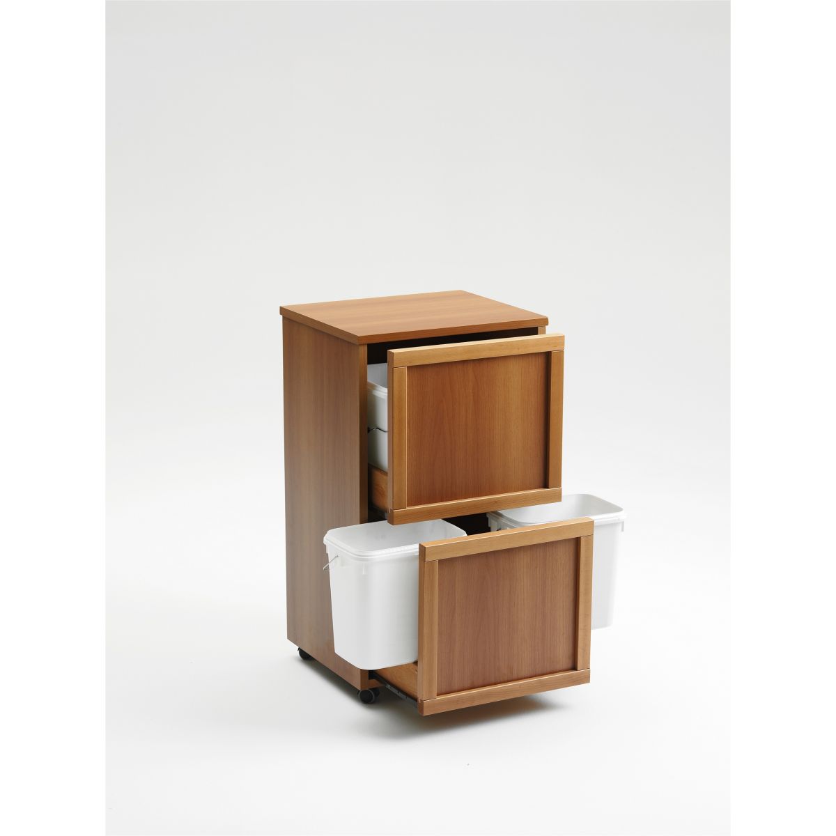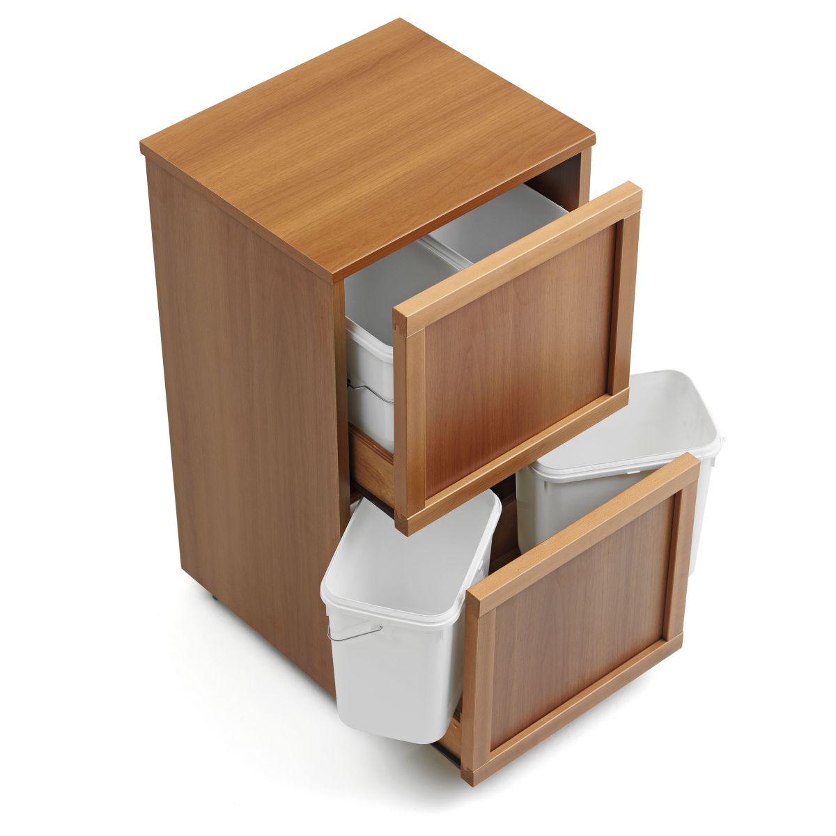 "Abfalleimer Mülltrennung MADERA 4, Holz - 2 herausnehmbare Körbe - Kirschholz-Finish