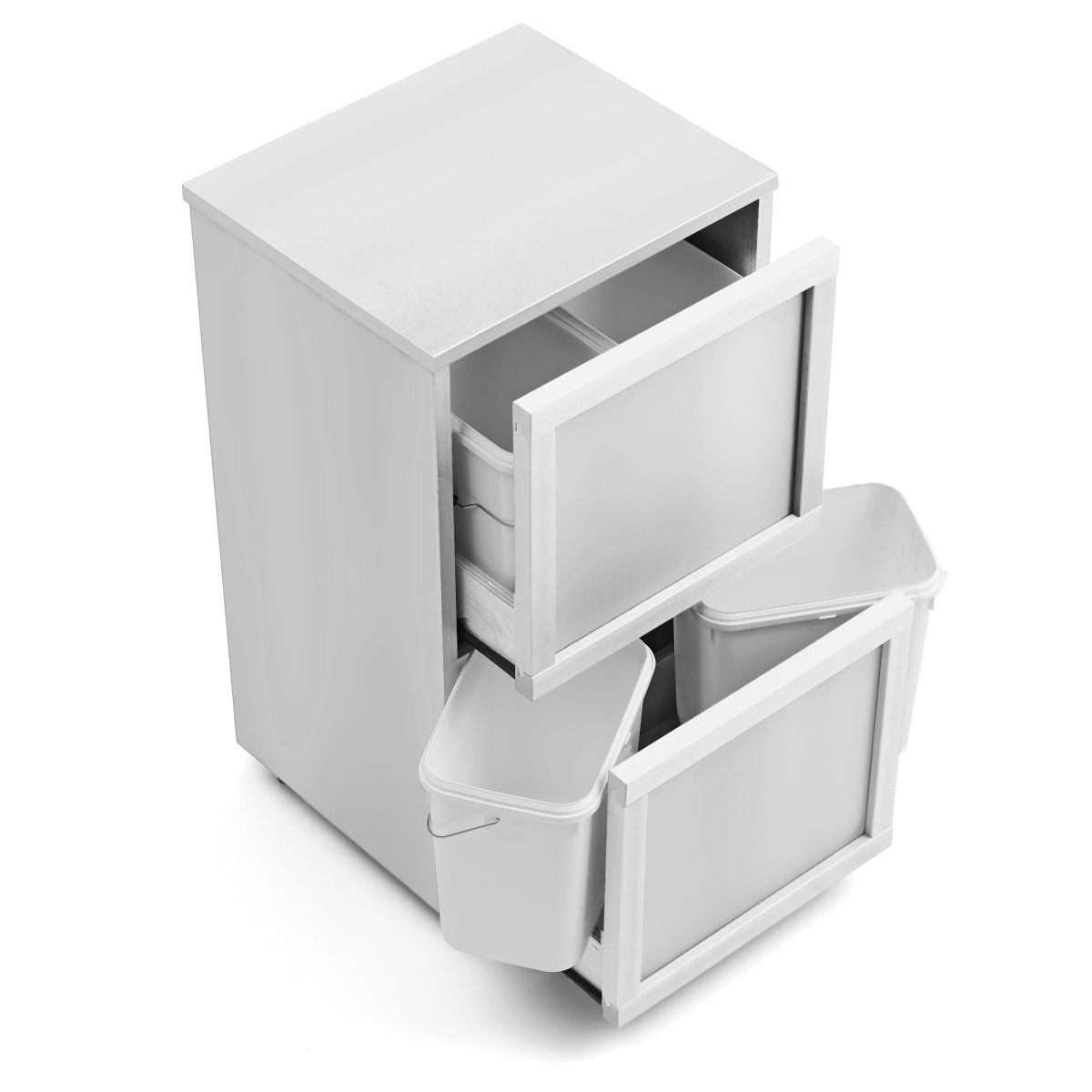 - Ausgestattet mit 4 drehbaren Behältern aus Kunststoff mit einem Fassungsvermögen von 12 Litern, leicht herausnehmbar, ideal für kleine Räume