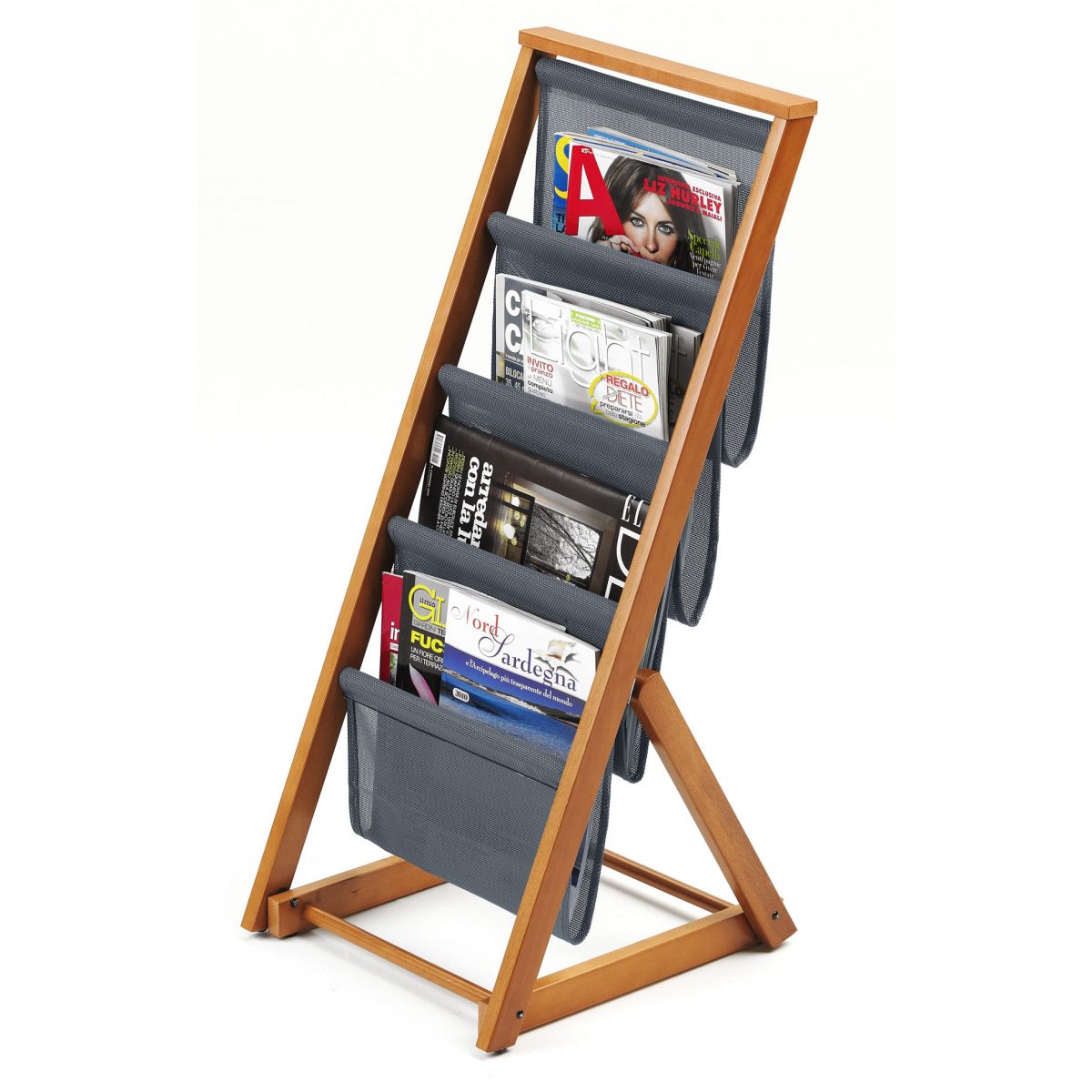 "Magazinhalter MATRIX, Holz - Klappbar - Kirschholz-Finish • Struktur aus massiver Buche, mit 4 Fächern für Zeitschriften aus Textilene, rutschfeste Füße an der Basis • Einfach zu öffnen und zu schließen • Produkt wird montiert geliefert • ORIGINAL MADE IN ITALY, exklusiv hergestellt von ARREDAMENTI ITALIA GROUP S.R.L."