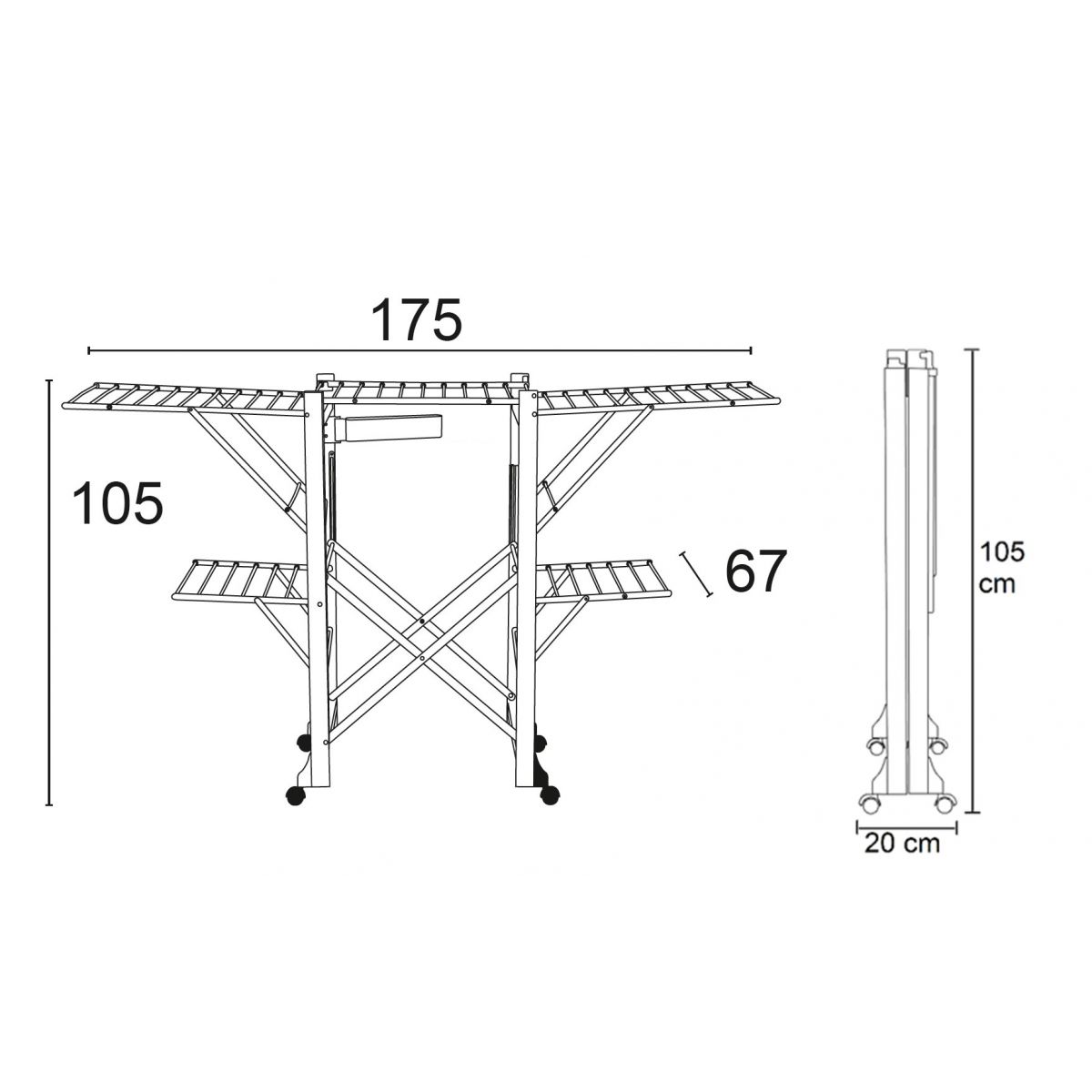 • Pulverbeschichtete Aluminiumstangen, kann vollständig oder teilweise geöffnet werden, um eine maximale Trockenlänge von 30 m zu erreichen.