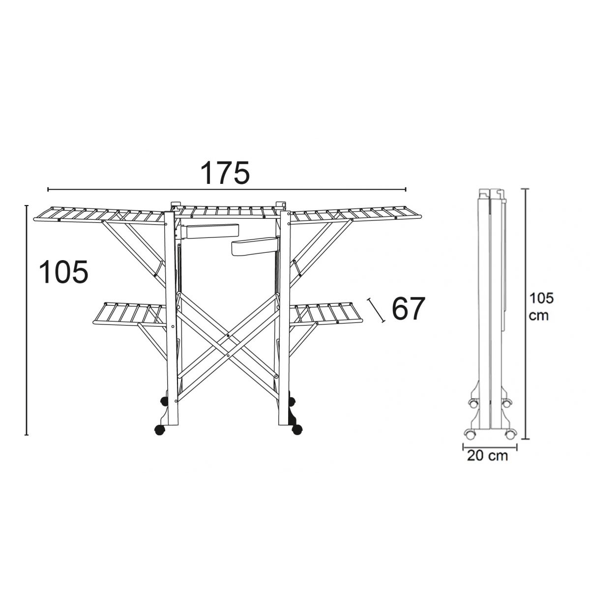 Das Modell Gabbiano gilt als die praktischste Art, Ihre Kleidung zu trocknen. Die Struktur besteht vollständig aus massivem Buchenholz, unabhängige Nylon-Gitter und pulverbeschichtete Aluminiumstangen. Das Holz gewährleistet die Stabilität des Produkts, die Nylon-Gitter sorgen für extrem einfaches Öffnen und Schließen des Artikels, und die weiß lackierten Aluminiumstangen schaffen eine Farbkombination, die das Produkt ansprechend und elegant macht. Mit 30 m nutzbarem Draht können viele Kleidungsstücke aufgehängt werden. Einmal zusammengeklappt, nimmt er nur 17 cm Platz ein und kann daher in jeder Ecke des Hauses verstaut werden. Die schwenkbaren, spurlosen Gummireifen mit Blockierfunktion ermöglichen zudem eine einfache und sofortige Manövrierfähigkeit. Der Artikel verfügt außerdem über 2 praktische, verstellbare Klammernhalter.