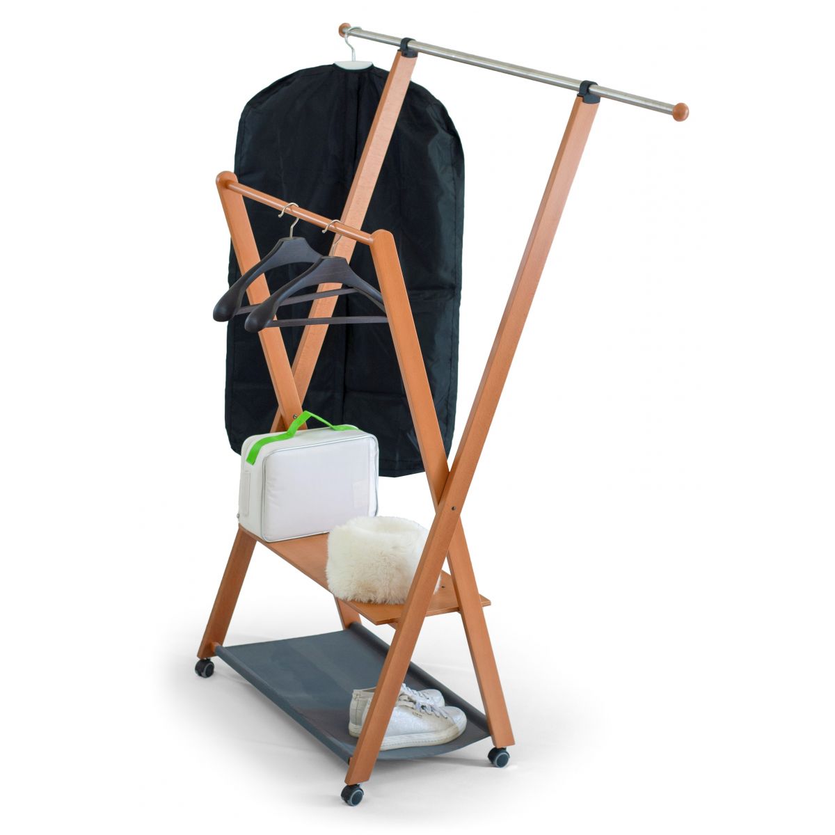 "Klappbarer Kleiderständer PARSIFAL, Holz - Ausziehbar - Kirschholz-Finish
