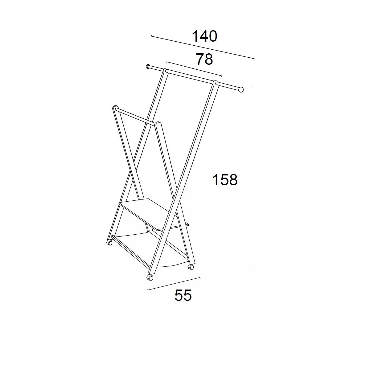 - Komplett aus massiver Buche gefertigter Rahmen mit ausziehbaren Edelstahlstangen an beiden Seiten, um die Stange von 78 cm auf bis zu 140 cm zu verlängern.
