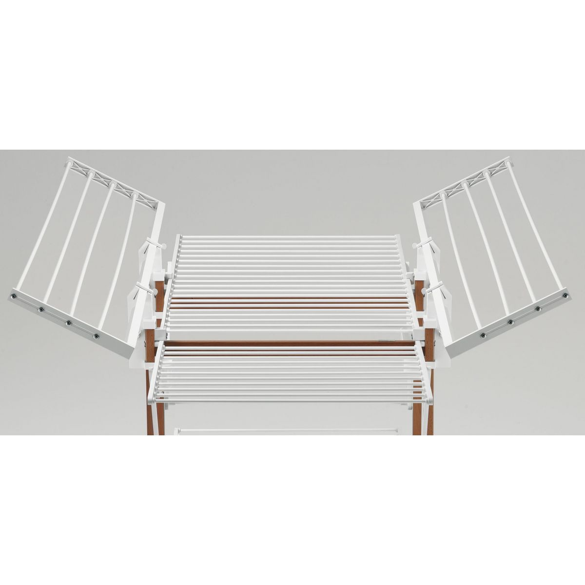 "Das Pellikano-Modell ist ein Wäscheständerzubehör für Bettlaken mit einer Nylon-Gitterstruktur und Stangen aus pulverbeschichtetem Aluminium. Es wird mit einfachen Kunststoffzubehörteilen geliefert, mit denen es angebracht wird. Das optionale Zubehör kann jederzeit hinzugefügt und entfernt werden. Dank seiner geringen Dicke kann es dann in jeder Ecke des Hauses verstaut werden, auch hinter einem kleinen Schrank. Es kann auf den Modellen Gabbiano, Airone, Aliante, Aquilone und Kolossal verwendet werden und bietet zusätzliche 6,5 m nützlichen Wäschetrocknungsdraht."