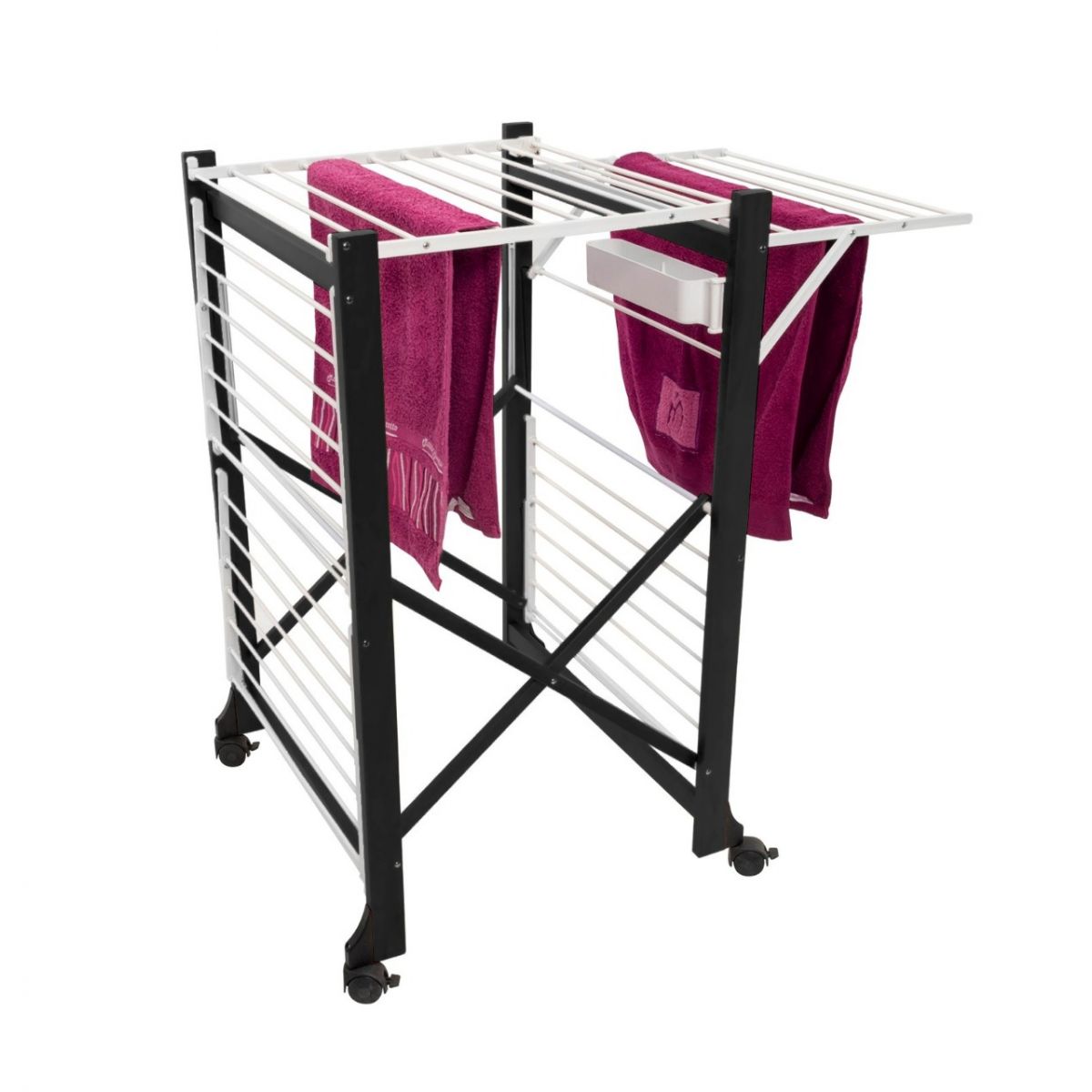 • Verstellbare Wäscheklammernhalterung, leicht zu bewegen und zu verstauen dank der schwenkbaren, spurlosen Gummireifen mit Blockierfunktion