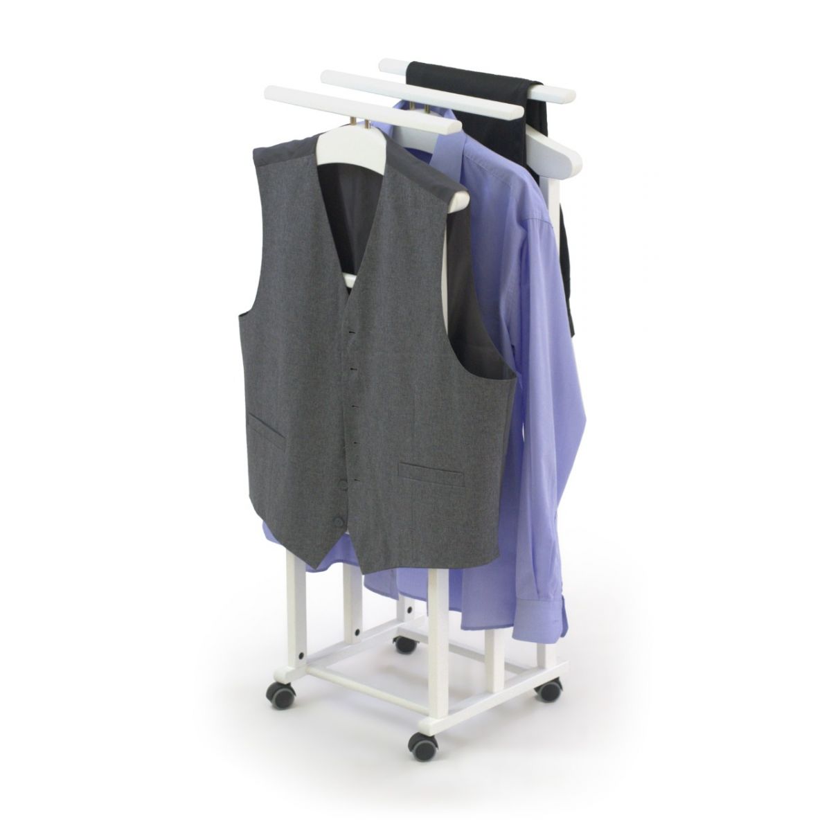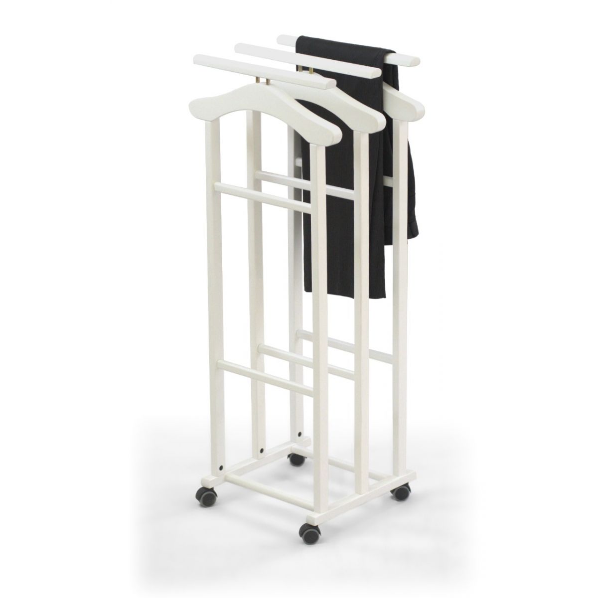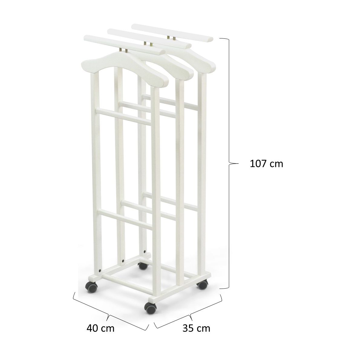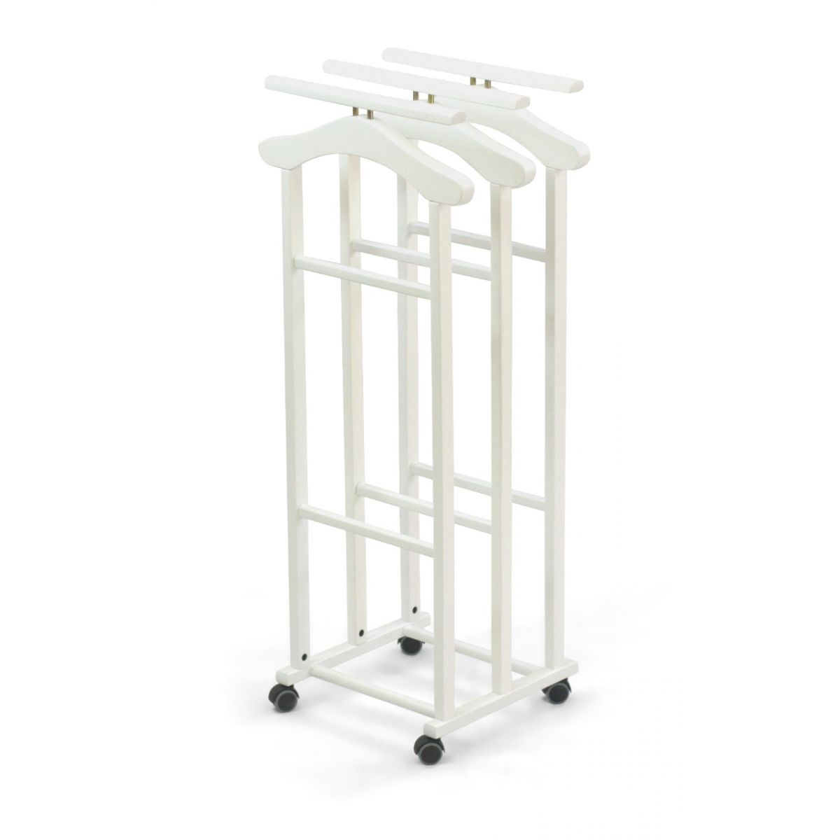 Indossatore für Schlafzimmer Triello, Holz - Dreifache Kleiderbügel und dreifache Hosenstange - Weiß lackiert