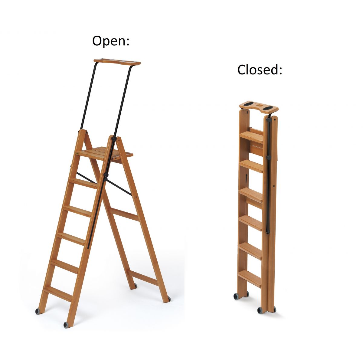 6-Stufen-Leiter TUSCANIA, Holz - Klappbar - Mit Sicherheitssystem - Kirschbaum-Finish