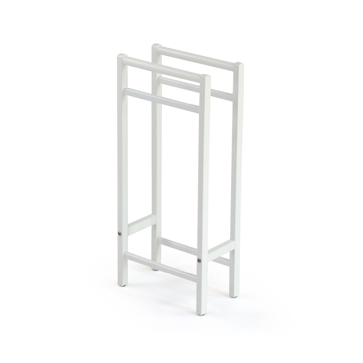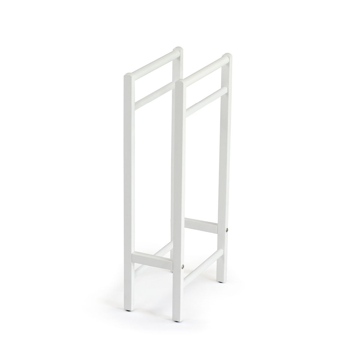 Struktur aus massivem Buchenholz mit Gummifüßen an der Basis, bestehend aus zwei Handtuch- oder Hosenträgerhaltern.